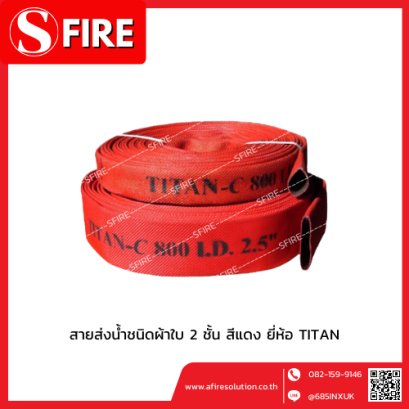 สายส่งน้ำชนิดผ้าใบ 2 ชั้น ด้านในเป็นยางสังเคราะย์ สีแดง ยี่ห้อ TITAN